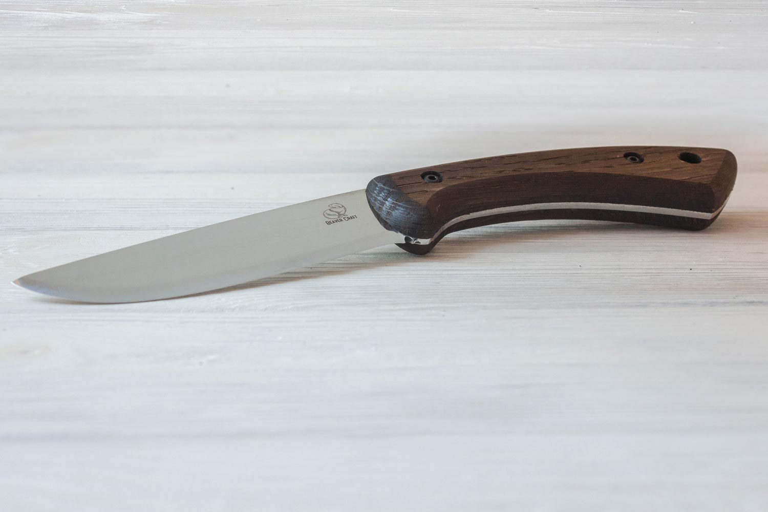 Produktinformationen "Bushcraft Messer "Beavercraft 1" mit Eichenholzgriff & Lederscheide"