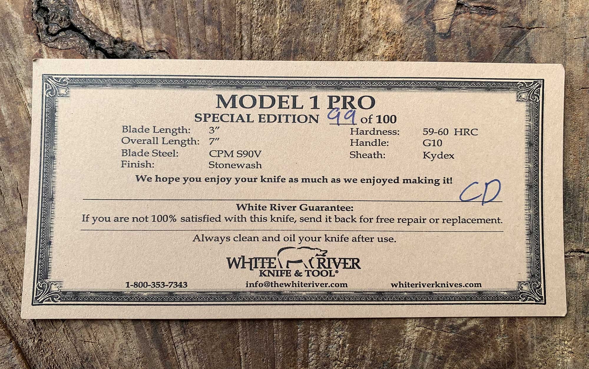 Das White River M1 Backpacker PRO Limited Edition 2021 mit abnehmbaren Griffschalen in Coyote Brown G-10 ist ein EDC Messer für jeden Tag und jeden Zweck. In dieser Pro Version werden die Griffschalen aus texturiertem G-10 gefertigt und die Klinge aus pulvermetallurgischen Highend-Stahl CPM-S90V mit Stonewash-Finish. Das Backpacker Pro Limited Edition 2021 ist auf 100 Stk. limitiert. Jedes Messer besitzt seine eigene Seriennummer auf der Klinge und ein Zertifikat. Das Messer wird in einer Holzbox mit eingravierter Seriennummer geliefert.