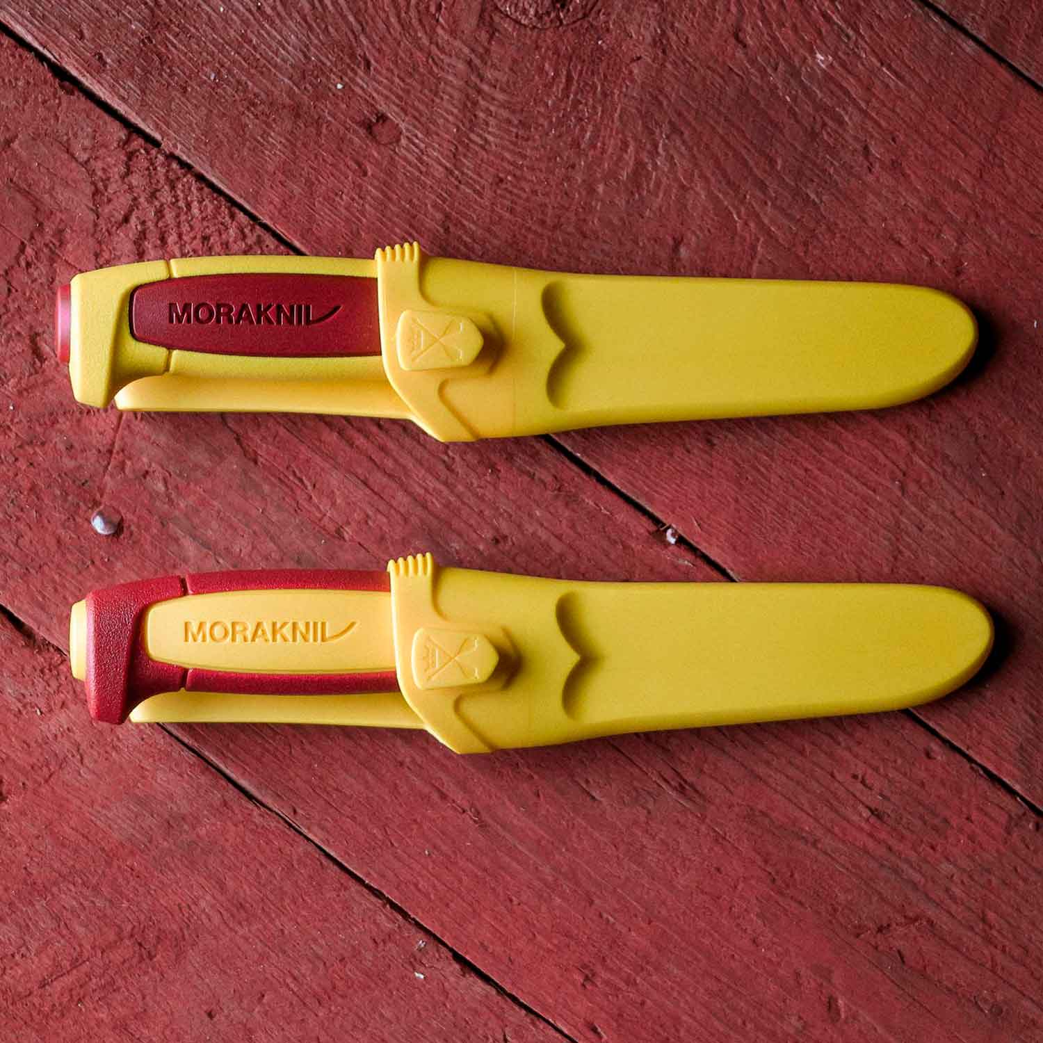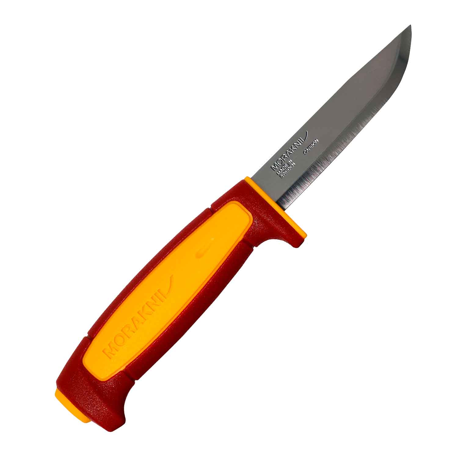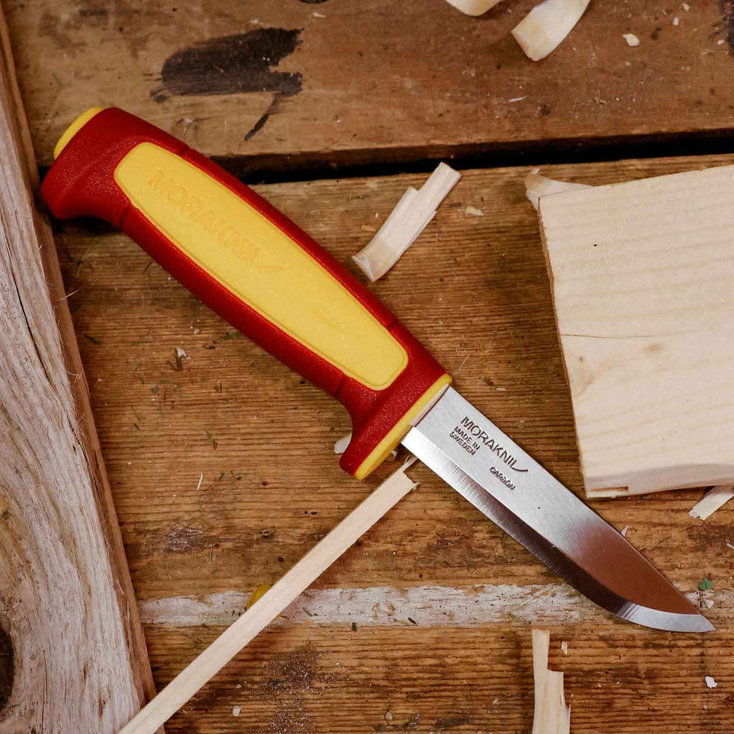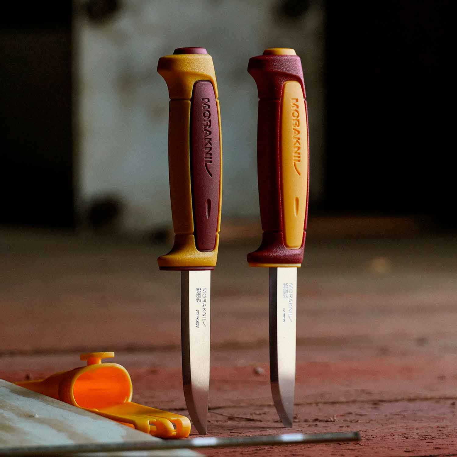Der Griff dieses feststehenden Messers besteht aus langlebigem Polypropylen. Der schwedische Hersteller hat die Fertigung in der Farbkombination dunkelrot-gelb allerdings auf das Jahr 2023 beschränkt. Somit eignet sich das Mora Basic 511 in der 2023er Edition auch gut als Geschenk.
