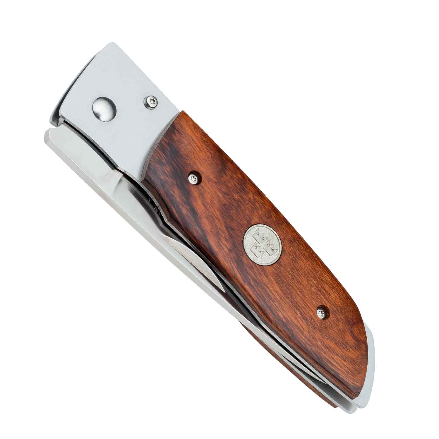 Die Griffschalen aus amerikanischem Wüsteneisenholz stammen aus zertifiziertem Anbau aus dem Südwesten der USA. Wüsteneisenholz ist aufgrund seines langsamen Wachstums eines der härtesten und dichtesten Hölzer der Welt mit goldbraunen, stark gemaserten Einschlüssen. Aufgrund seiner Dichte von bis zu 1,2 kg/dm³ hat das Holz alz einiges Holz nicht die Fähigkeit zu schwimmen. Dank dieser hohen Dichte lässt es sich jedoch hervorragend pollieren und ist enorm widerstandsfähig degen Abrieb und Verschleiß; das ideale Holz für Messergriffe. Das Design ist zeitlos, klassisch und modern. Die Klinge wird über einen Liner-Lock sicher im offenen Zustand fixiert. Aufgrund seiner Nagelkerbe kann man das Messer einfach öffnen und es ist legal zu tragen!